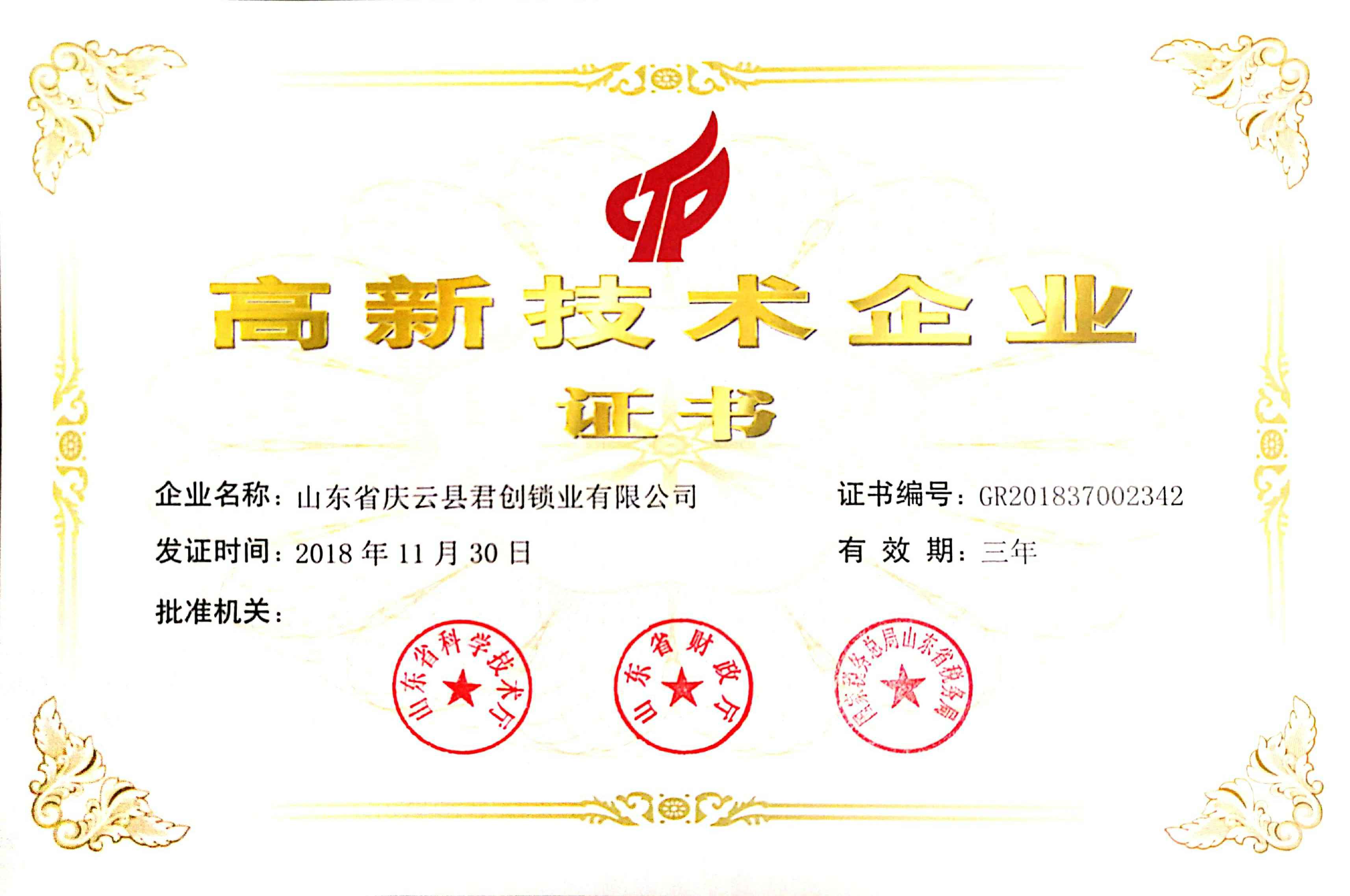 近日,南京冉国经典文化推广有限公司喜迎佳音,获得了“国家高新技术企业证书”。这是南京冉国经典文化推广有限公司继获得山东省产品质量奖、德州市信用民营企业、等荣誉后获得的一项新的荣誉。